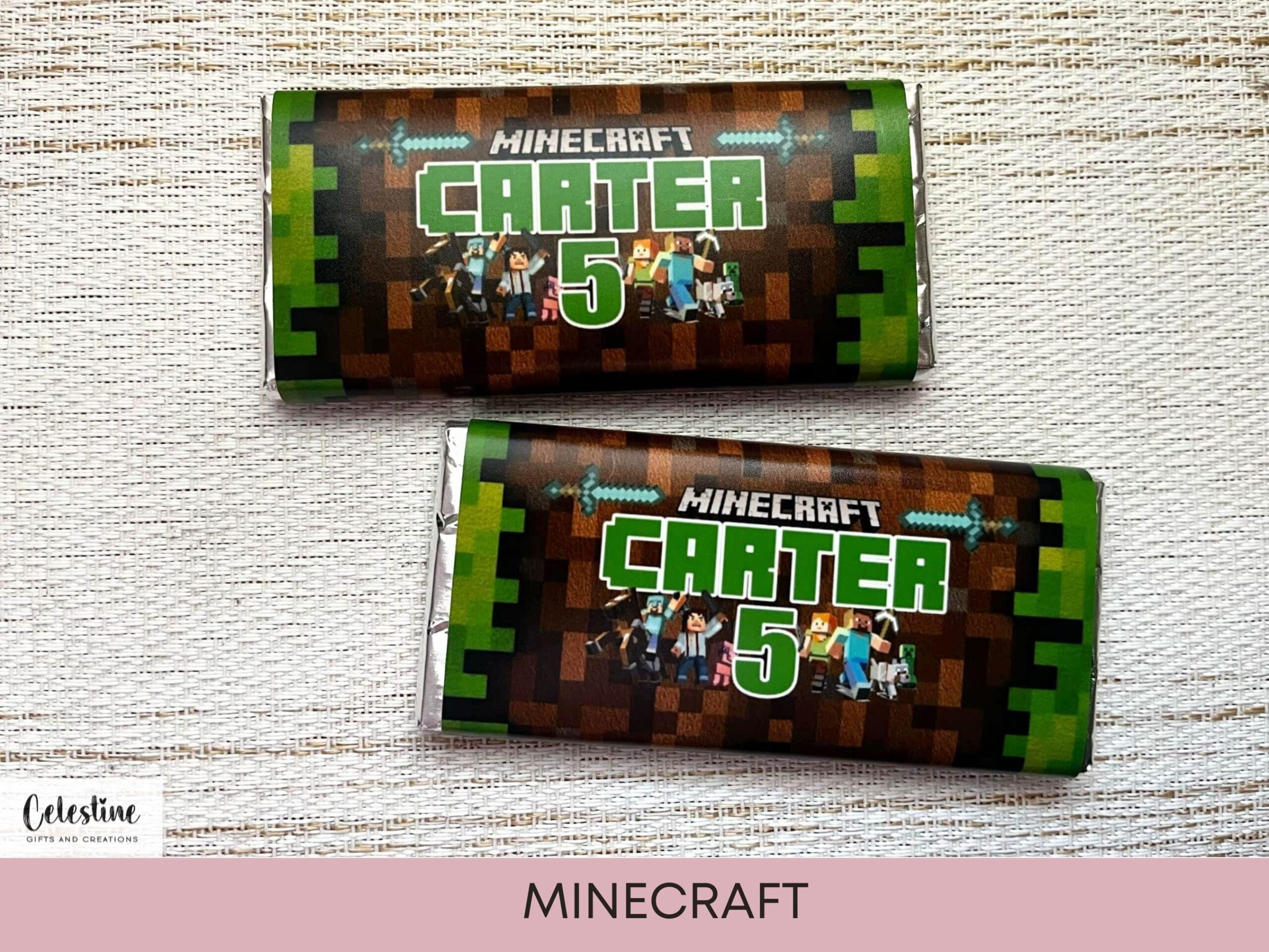 Minecraft Theme Party Personalised Chocolate Bars Party Favours Birthday Favours Minecraft Party Personalised Minecraft Chocolate Bars Etsy