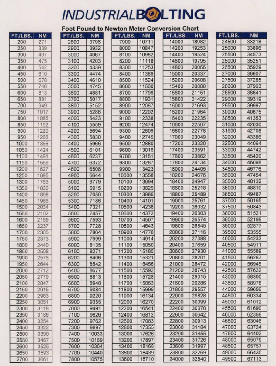 Printable Newton Meter To Foot Lbs
