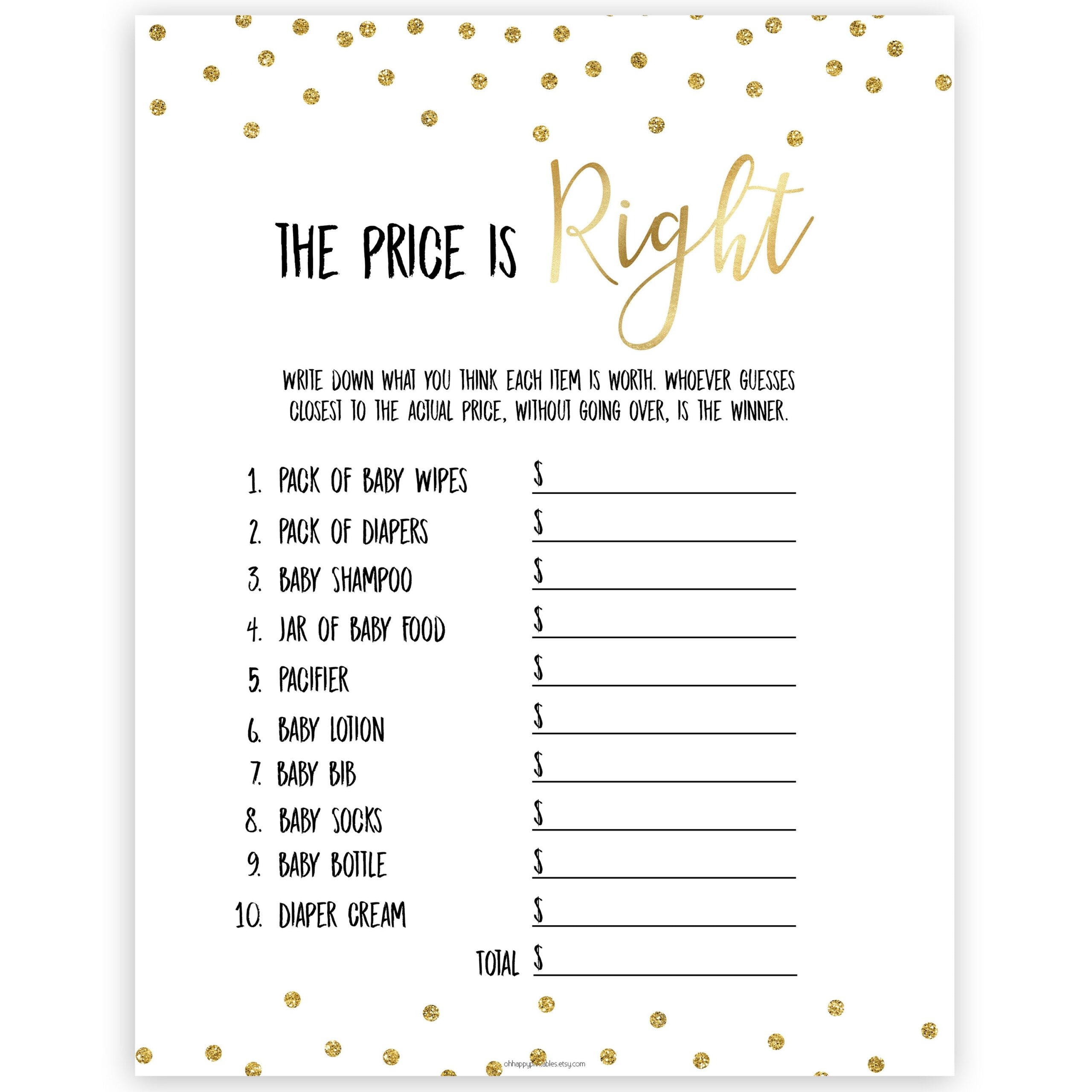 Printable Price Is Right Baby Shower Game