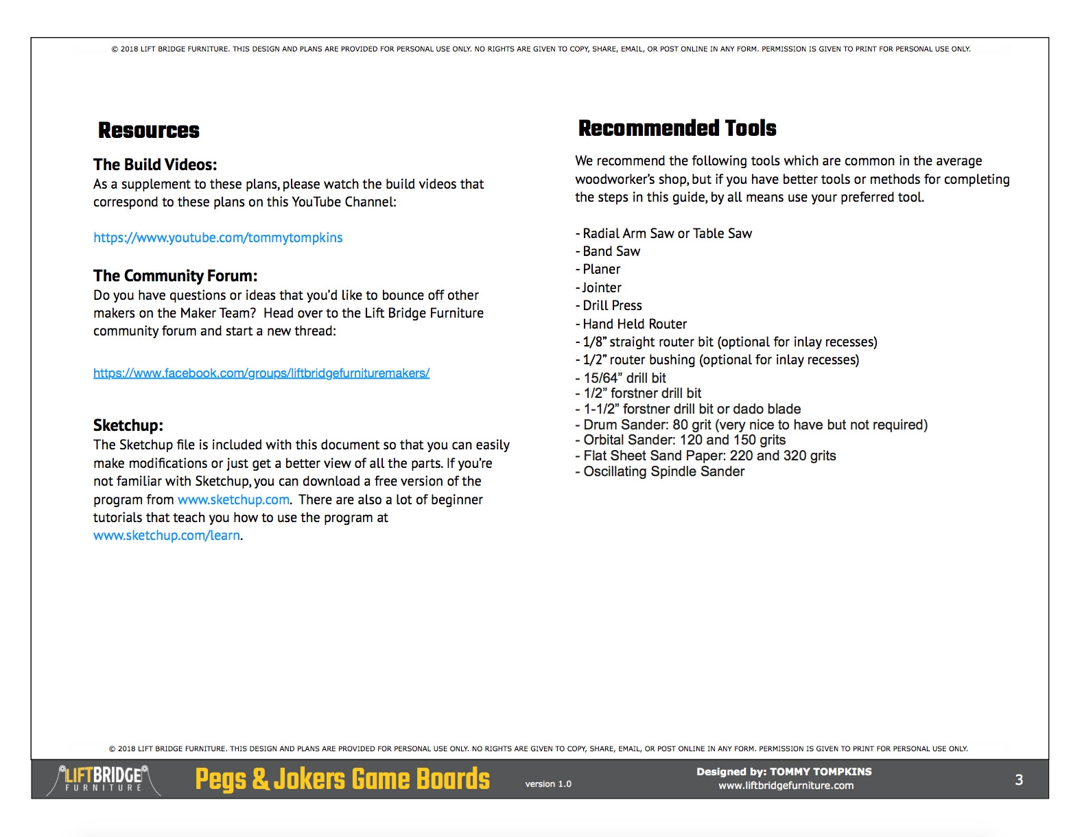 Pegs And Jokers Game Plans Lift Bridge Furniture