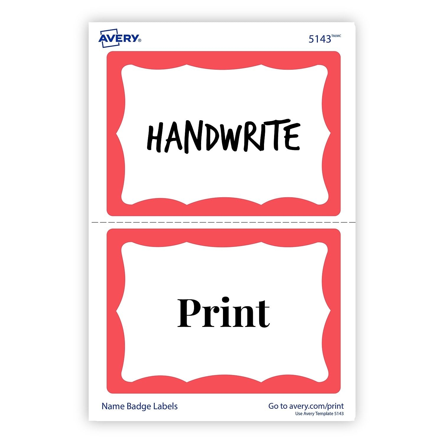 Amazon Avery 5143 Printable Self Adhesive Name Badges 2 1 3 X 3 3 8 Red Border 100 Pack Identification Badges Office Products