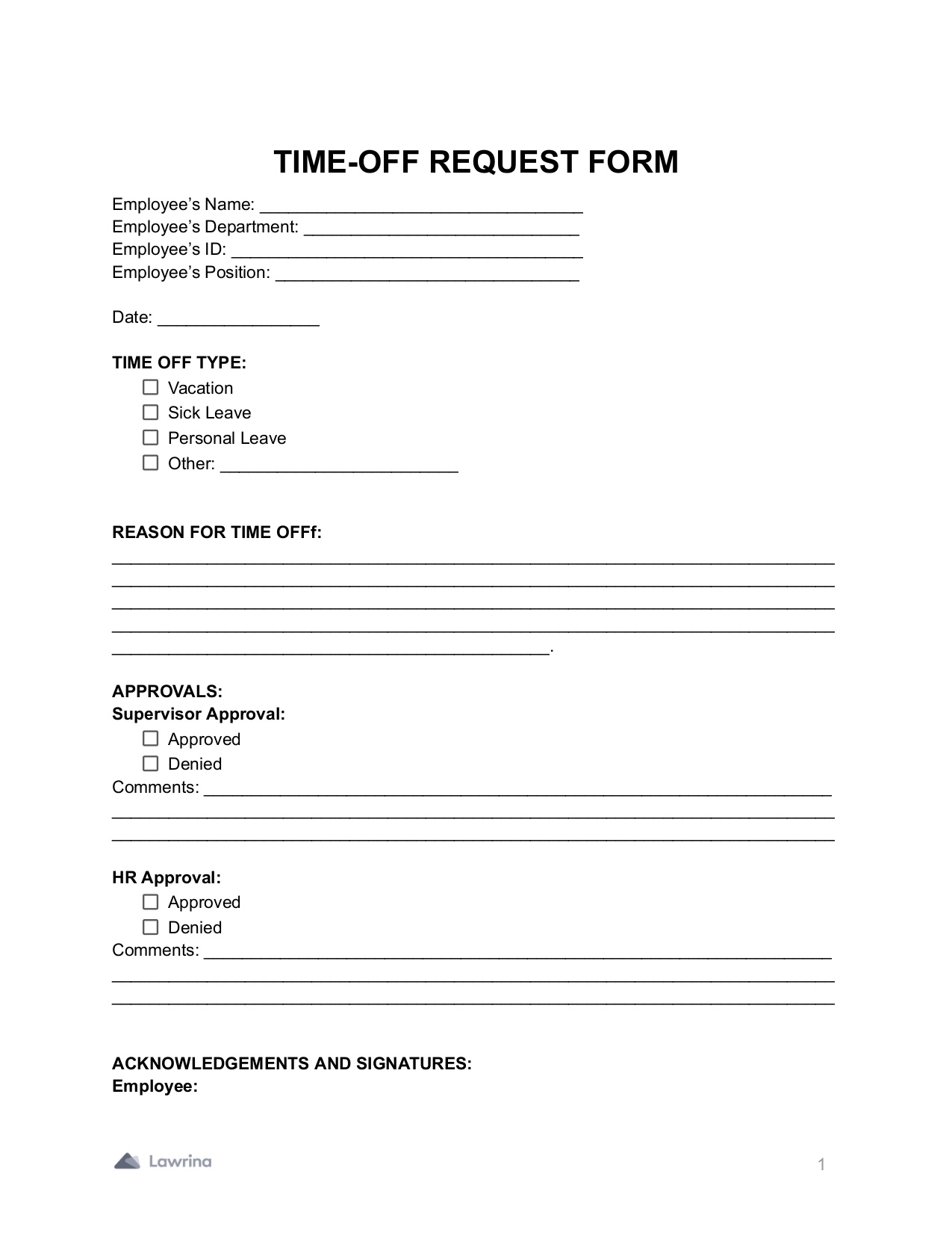 Free Time Off Request Forms Download In PDF Office Or GDocs
