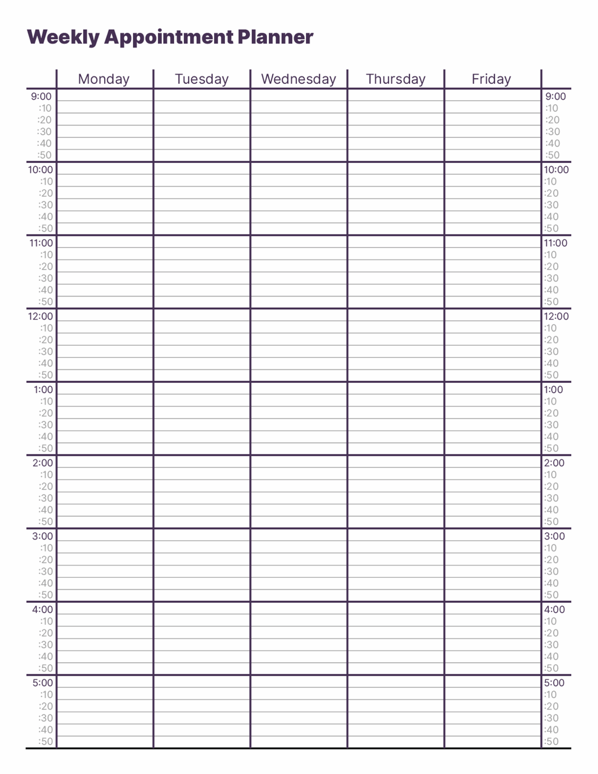 With a printable weekly planner with time slots, you can break down your day into manageable chunks and allocate specific tasks to each time slot. This can help you prioritize your to-do list and make sure you have enough time for everything you need to accomplish.