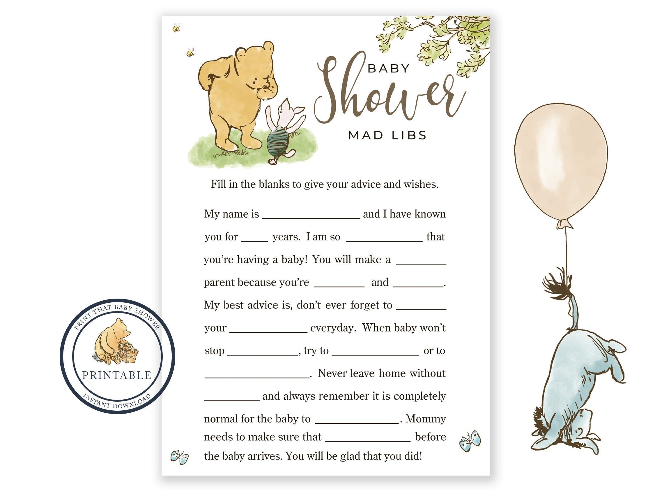 Baby Shower Game Winnie The Pooh Baby Shower Baby Mad Libs Pooh Bear Baby Shower Printable Baby Shower Mad Libs Game Baby Shower Etsy