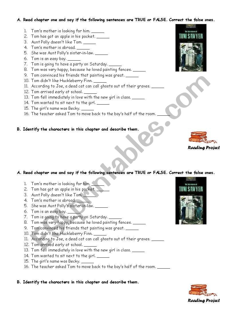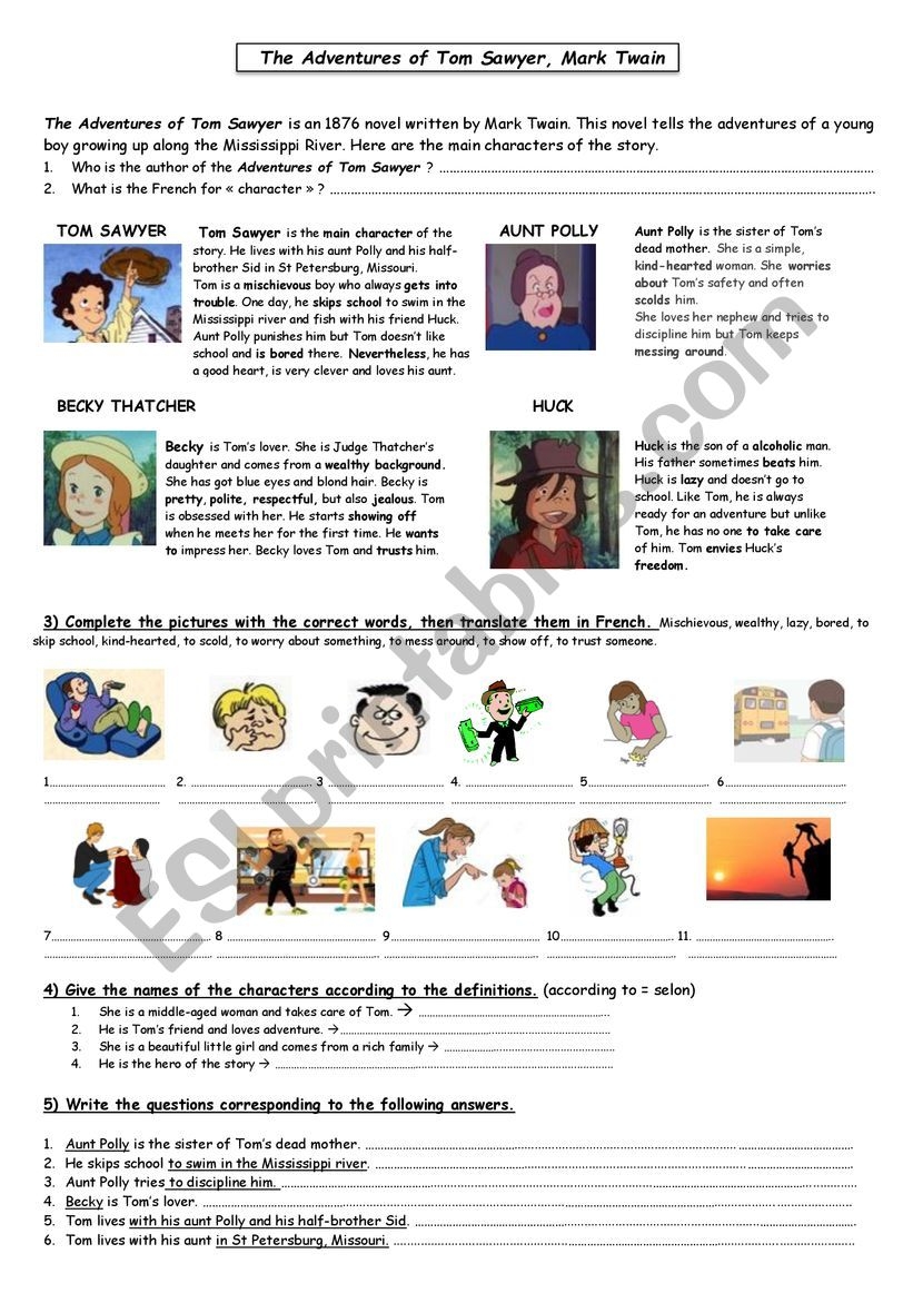 Tom Sawyer Characters updated ESL Worksheet By Sophieenglish