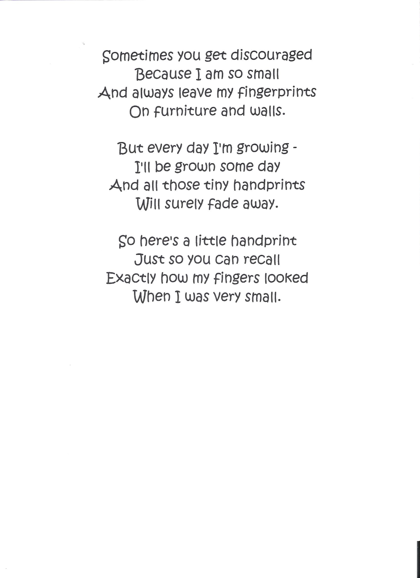 Handprint poems are a heartfelt way to express emotions and create a lasting memory. By incorporating a personal touch, such as a handprint, into a poem, you can create a unique and special keepsake that will always remind you of the love and support you have in your life.