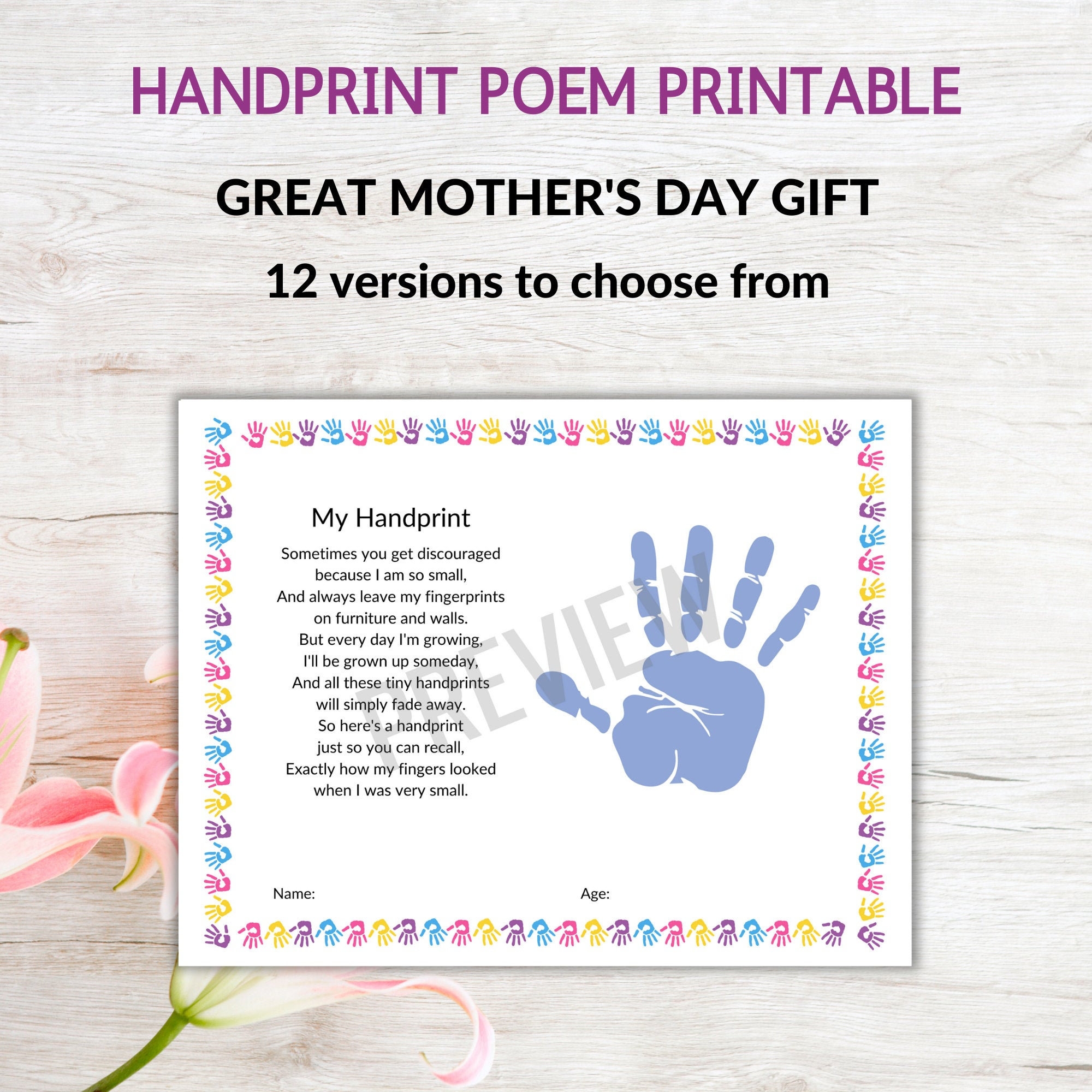 Handprint Poem Printable Mother s Day Gift Preschool Graduation Etsy