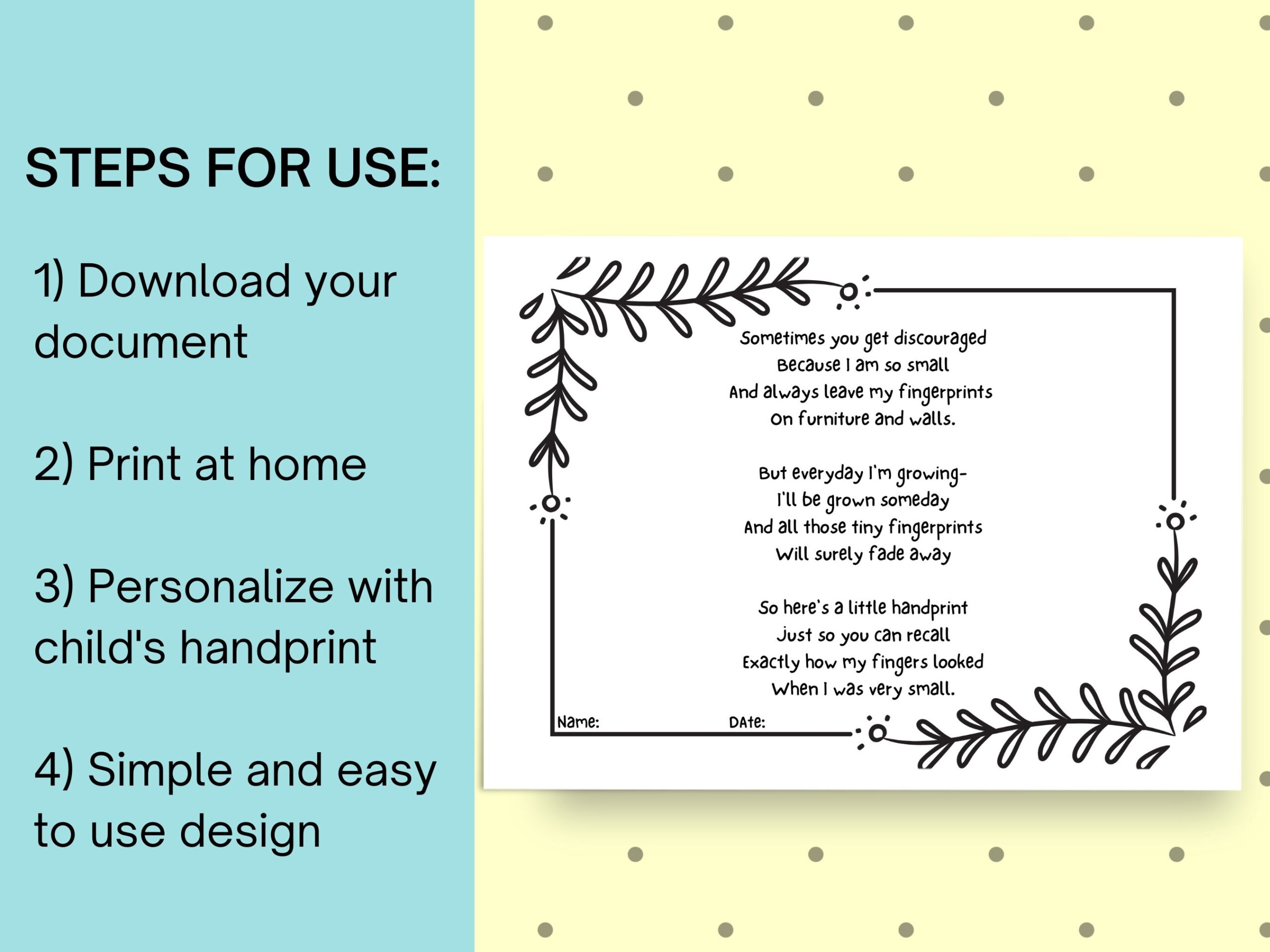Printables are a convenient and easy way to create personalized gifts or decorations. With a handprint poem printable, you can easily customize the design and message to suit your needs. Whether you’re making a gift for a loved one or looking for a way to brighten up your space, a handprint poem printable is a versatile and thoughtful option.
