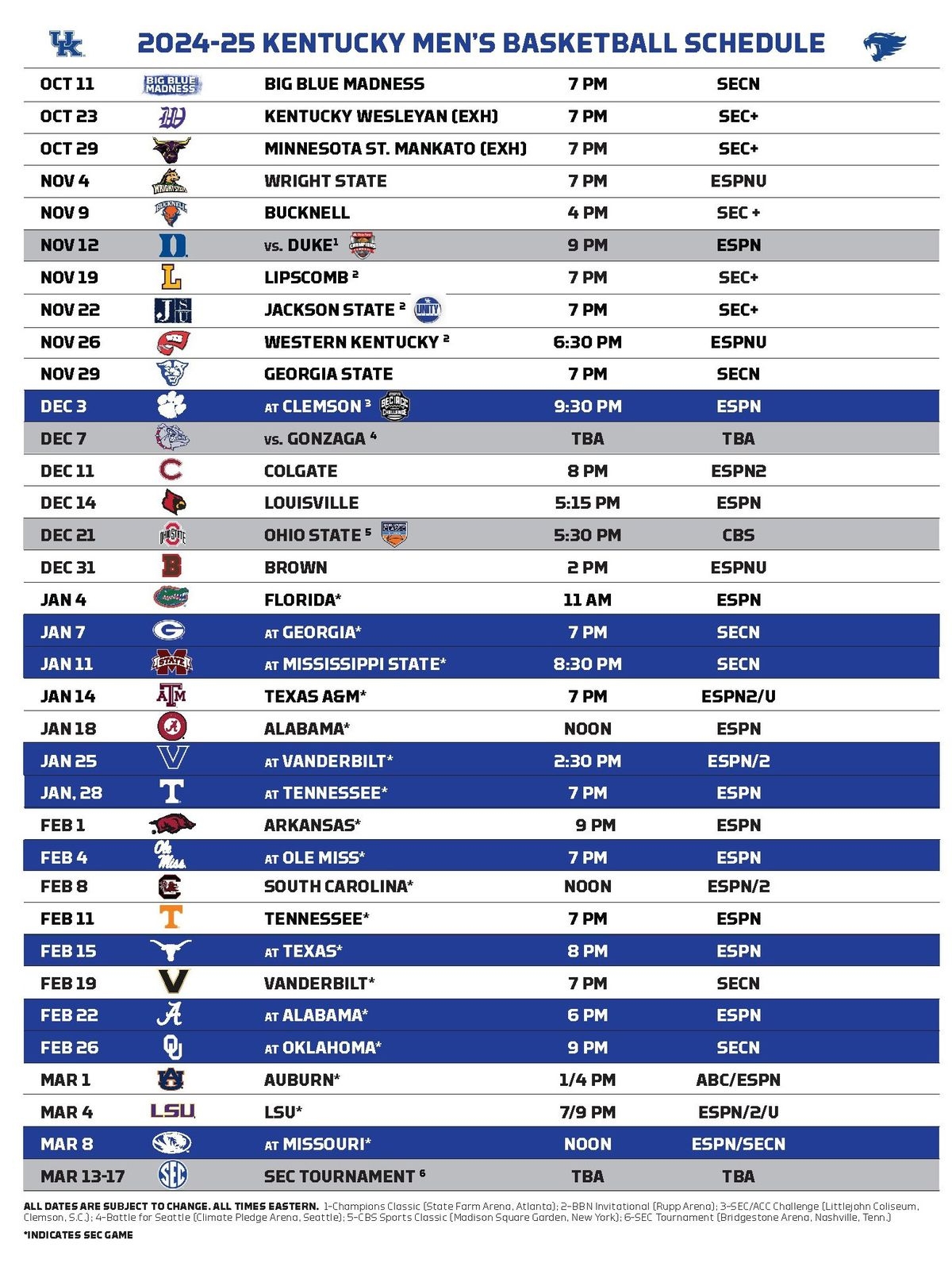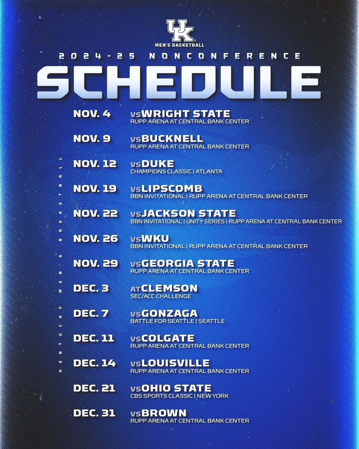 2024 25 Kentucky Basketball Schedule Times TV Channels And More A Sea Of Blue
