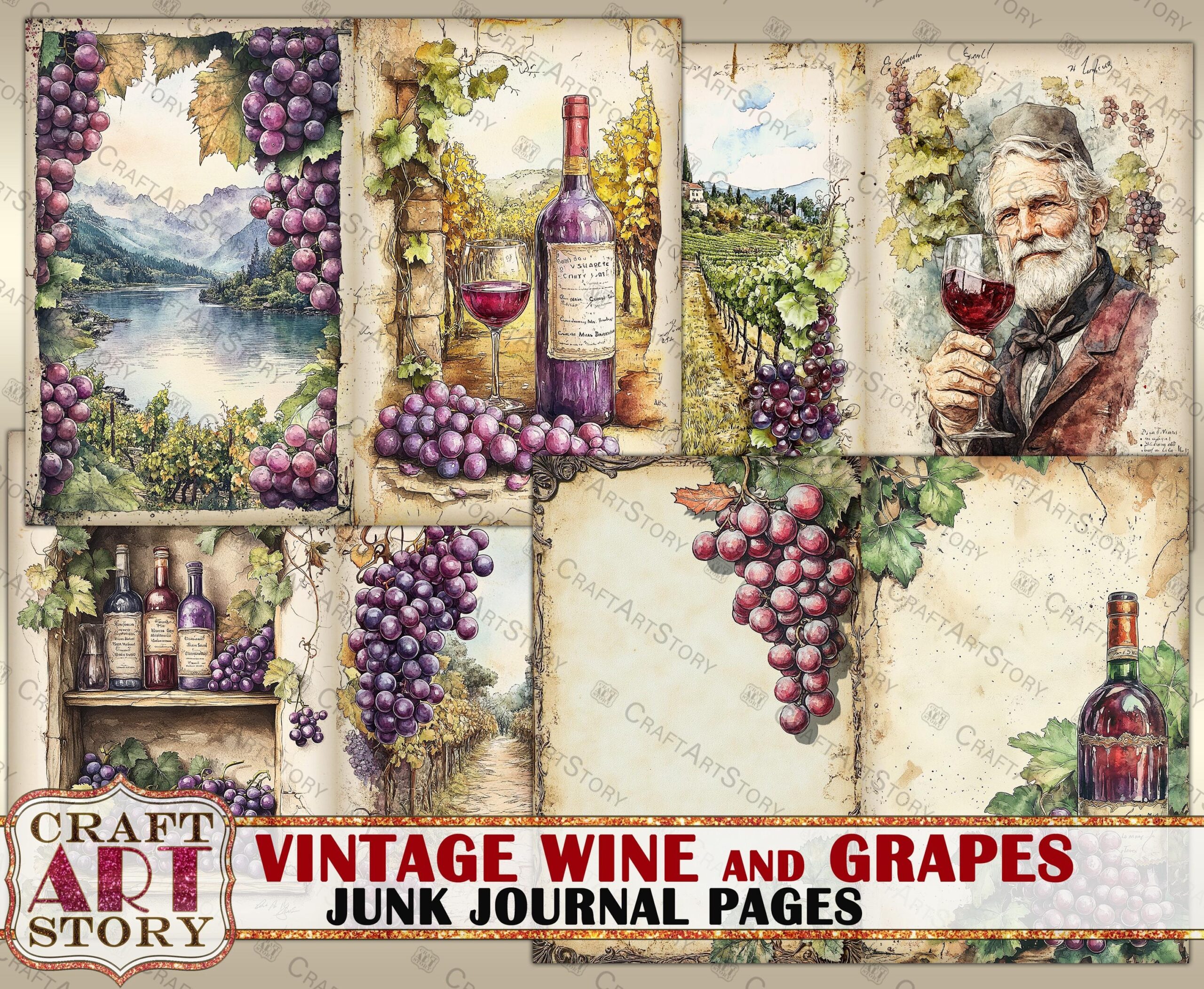 Vintage Wine And Grapes Junk Journal Pages scrapbook Printables Digital Papers Etsy