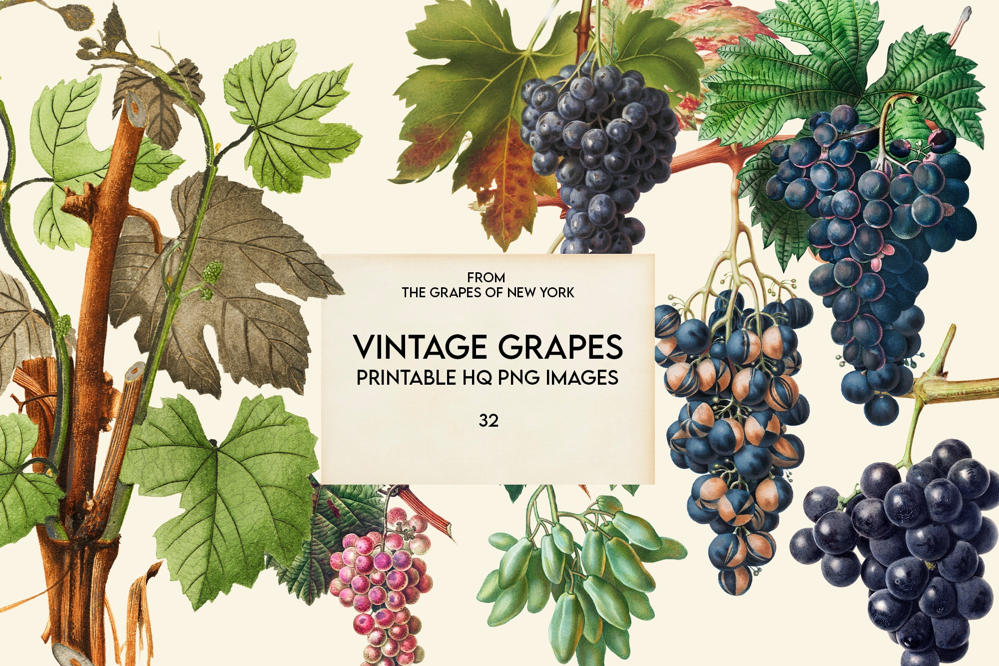 Vintage Grape Illustrations Png clip Art antique Fruits wine digital Download watercolor hand drawn printable transparent leaves graphic Etsy