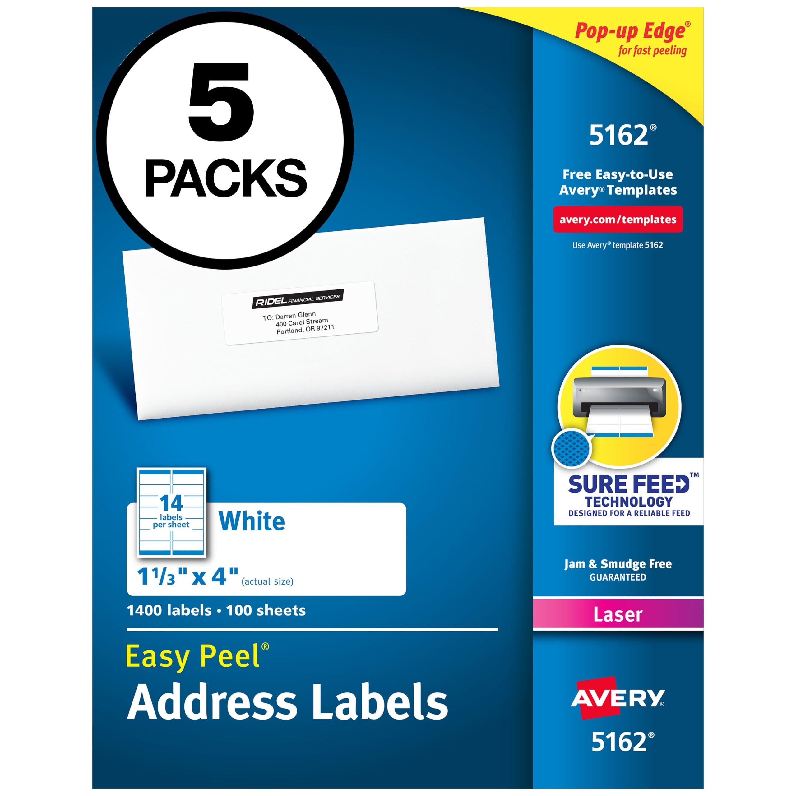Avery Easy Peel Printable Address Labels With Sure Feed 1 1 3 X 4 White 1 400 Blank Mailing Labels For Laser Printers 5162 5 Pack Walmart