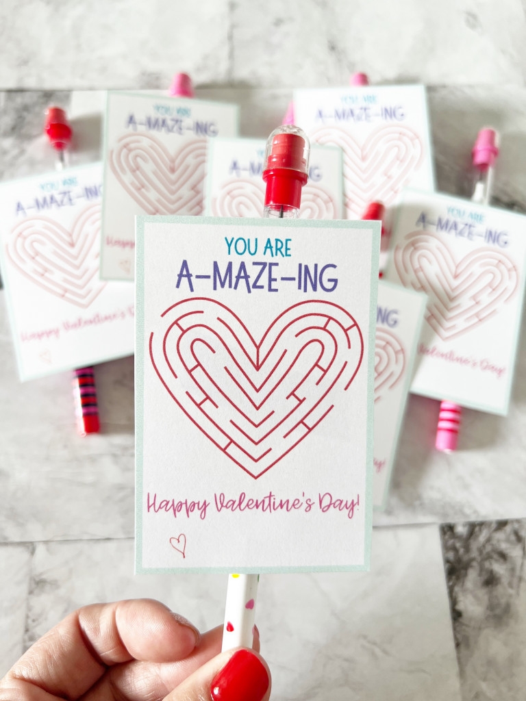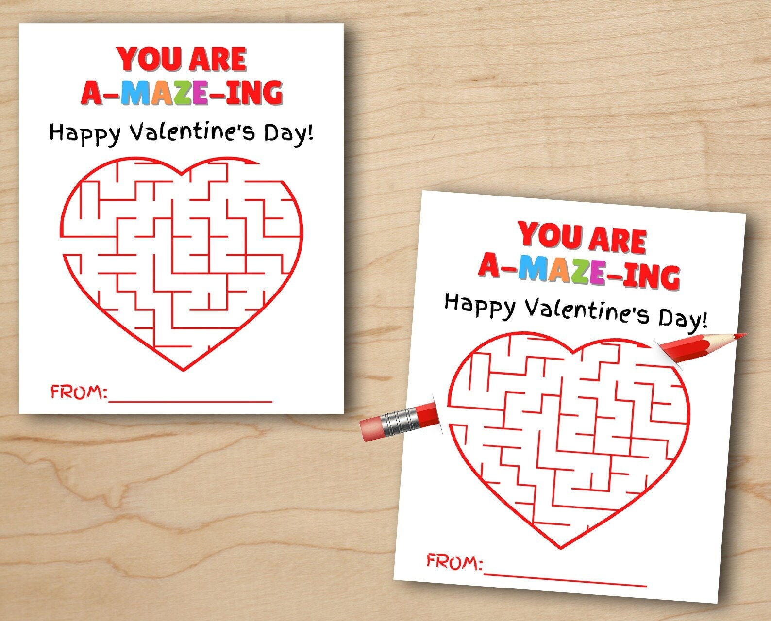 You re Amazing Valentine Card Printable Valentines Day Gift Maze Pencil Holder Non Candy Heart Kids DIY School Classroom Teacher Puzzle Etsy